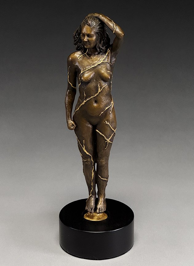 I have long been inspired by the potential of humanity to persevere through the harshest of circumstances. Inspired by the Japanese ceramic practice of kintsugi (repairing cracks/flaws with gold), “Unbroken” celebrates the triumph of the individual over their hardest trials in life. It poses the notion that we can be more beautiful, and grow into something greater, something harder to knock down, for having gone through such experiences.